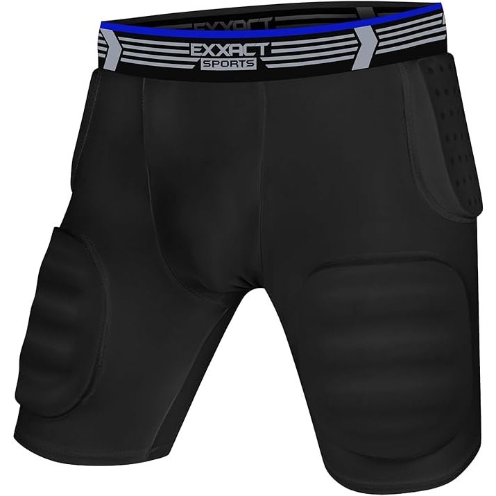 Exxact Sports Rebel 5-Pad Youth Football Girdle for Boys with Integrated Hip, Thighs, Tailbone Pads, Padded Compression Shorts, Football Girdle Youth with Cup Pocket