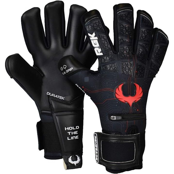 The Renegade GK Limited Edition Rogue Soccer Goalie Gloves are designed for professional level goalkeepers, with sizes ranging from 6 to 11. These gloves are equipped with Pro-Tek Fingersaves, providing maximum protection during intense games. The 4+3MM Giga Grip ensures a strong grip, helping goalkeepers make crucial saves.