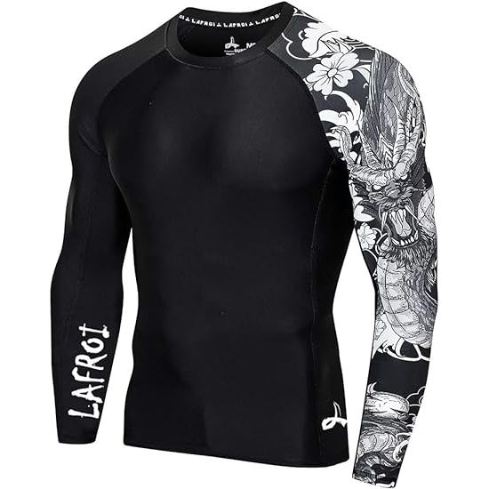 Made from a blend of polyester and spandex, the LAFROI rash guard is moisture-wicking and quick-drying, keeping you cool and comfortable during intense workouts. The flatlock seams and 4-way stretch fabric allow for optimal movement and flexibility, perfect for activities like surfing, swimming, or weightlifting. Whether you're hitting the gym or hitting the waves, the LAFROI Men's Long Sleeve Rash Guard will keep you protected and performing at your best. Description by ChatGPT.
