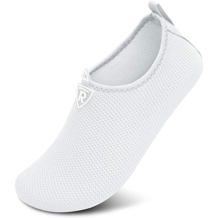 The Racqua Men & Women Water Shoes are designed as lightweight and flexible footwear for various water activities such as swimming, snorkeling, diving, and yoga. These shoes are made from breathable materials that allow for quick drying, preventing the buildup of moisture and odor. The stretchy and comfortable design of the shoes mimics barefoot walking, providing a natural feel and improved grip on wet surfaces.
