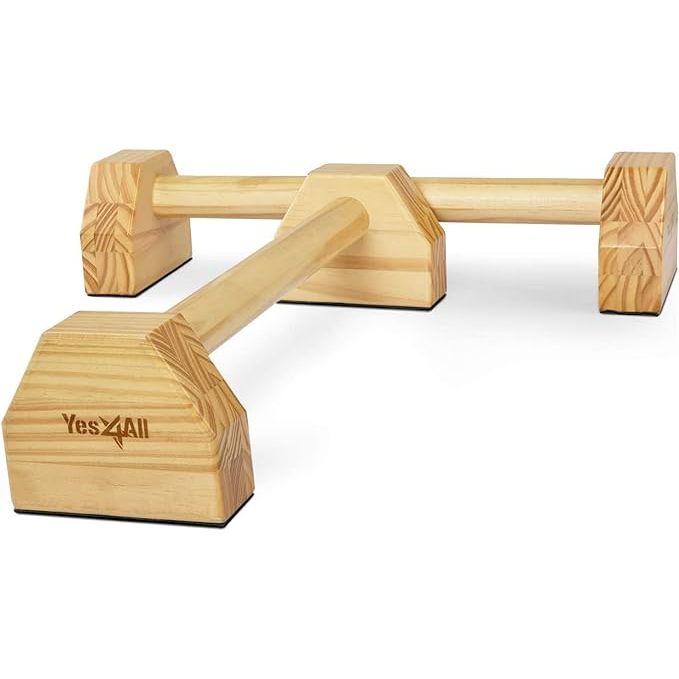 Overall, the Yes4All Steel/Solid Wood Push Up Stand Parallel Bars Parallettes are a versatile and effective tool for individuals of all fitness levels to enhance their calisthenics workouts and upper body strength training. With their durable construction, comfortable grips, and non-slip feet, these parallel bars provide a safe and effective way to achieve your fitness goals and improve your muscular endurance and stability. Description by ChatGPT.
