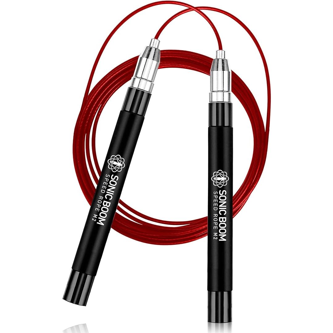 Sonic Boom M2 High Speed Jump Rope - Patent Pending Self-Locking, Screw-Free Design – Weighted, 360 Degree Spin, Silicone Grip with 2 Speed Rope Cables for Home Workout, & More