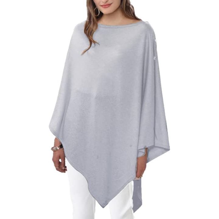 This poncho can be worn in multiple ways, making it a versatile piece that can be styled to suit your personal taste and outfit. It can be draped over the shoulders as a traditional poncho, wrapped around the neck as a scarf, or worn as a cardigan for a more layered look. The lightweight and easy-to-wear design makes it a convenient and practical choice for both casual and dressier occasions.