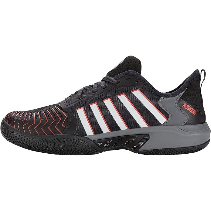 The K-Swiss Men's Pickleball Supreme Shoe features a breathable and lightweight upper material that helps keep feet cool and dry during intense matches. The shoe also has a non-marking rubber outsole that provides excellent traction on indoor and outdoor pickleball courts. Overall, the K-Swiss Men's Pickleball Supreme Shoe is a reliable and stylish option for pickleball players looking for a shoe that can keep up with their demanding gameplay. Description by ChatGPT.