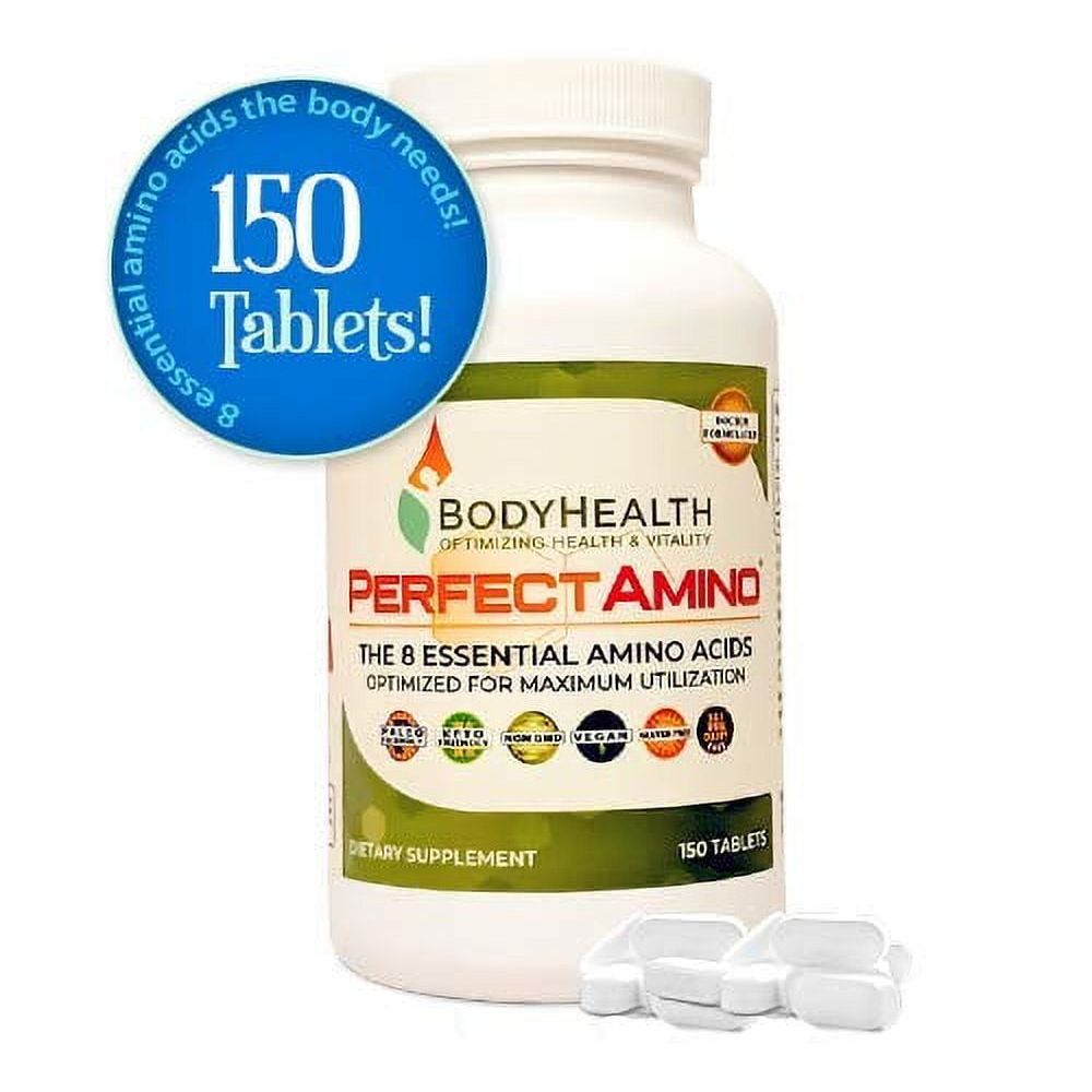 Harness the full potential of PerfectAmino 150 Tablets by BodyHealth, the ultimate supplement for athletes and fitness aficionados looking to elevate their game. With unparalleled power, energy, and muscle recovery benefits, this all-natural formula offers superior performance enhancement without compromising on quality or safety. Boasting a high bioavailability rate of 99%, this product ensures rapid absorption within minutes, delivering the essential amino acids your body craves for optimal results. Whether you're striving for increased endurance, enhanced strength, or improved workout efficiency, PerfectAmino has you covered with a vegan-friendly, all-organic blend that accelerates muscle recovery, supports fat burning, and aids in lean muscle mass development.