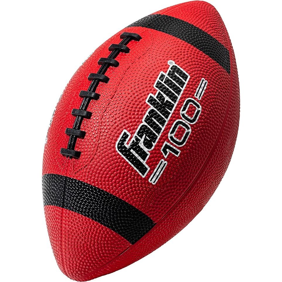 The Franklin Sports Kids Junior Football is designed for young players in peewee leagues. It features Franklin's Grip-Rite 100 technology, which provides an enhanced grip for easier throwing and catching. The rubber construction makes it durable for outdoor play, ensuring it can withstand rough handling.