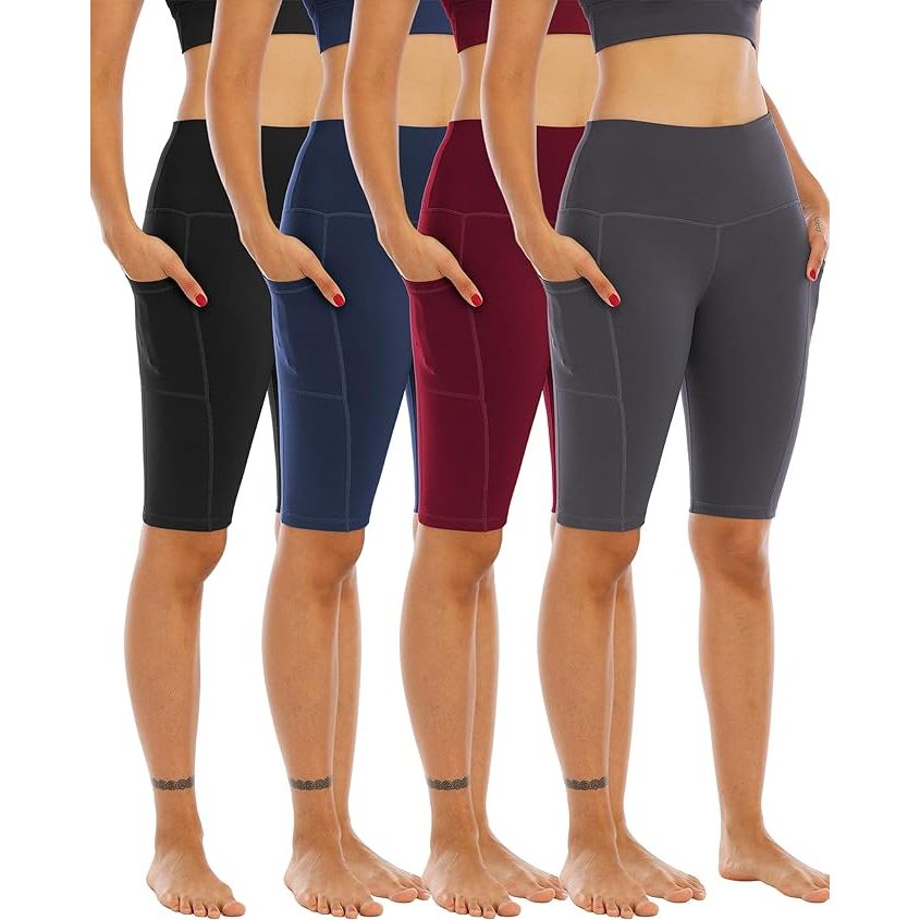 WHOUARE 4 Pack Biker Yoga Shorts with Pockets for Women,High Waisted Athletic Running Workout Gym Shorts Tummy Control