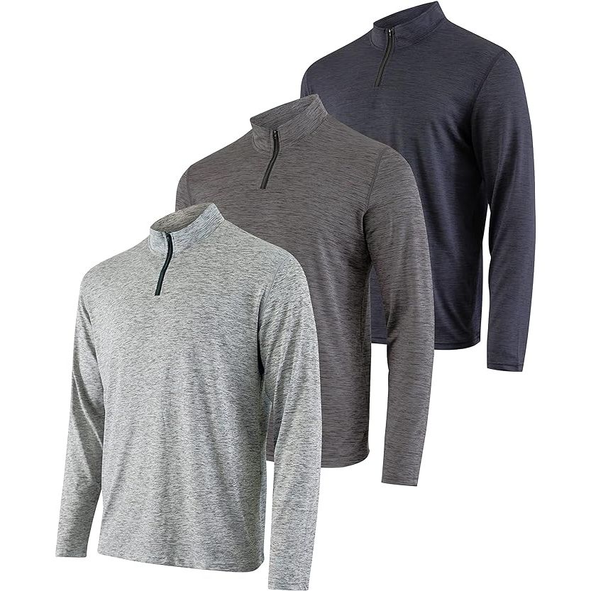 The Real Essentials 3 Pack Men's Dry-Fit Active Quarter Zip Long Sleeve Athletic Performance Pullover is designed for comfort and performance during any physical activity. This pullover is made from a dry-fit fabric that helps wick away sweat and moisture to keep you cool and dry. The quarter zip design allows for easy layering and ventilation, while the long sleeves provide added coverage and warmth.
