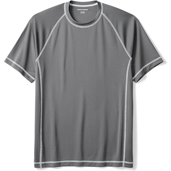 The Amazon Essentials Men's Short-Sleeve Quick-Dry UPF 50 Swim Tee is a stylish and practical swim shirt designed for men. It is made from 100% polyester which provides a comfortable and lightweight feel while swimming or participating in water activities. The UPF 50 rating offers excellent sun protection, making it a great choice for those who spend a lot of time in the water.