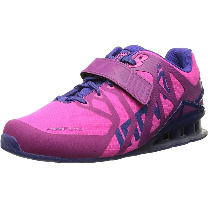 The Inov-8 Women's Fastlift 335 Powerlifting Weight Lifting Training Shoes are crafted for female athletes dedicated to powerlifting and weightlifting. Designed by the reputable athletic footwear company Inov-8, these shoes are tailored to optimize performance and safety during intense training sessions. The solid base offers exceptional support and balance crucial for heavy lifts, while the raised and rigid heel promotes proper squatting form and stability.
