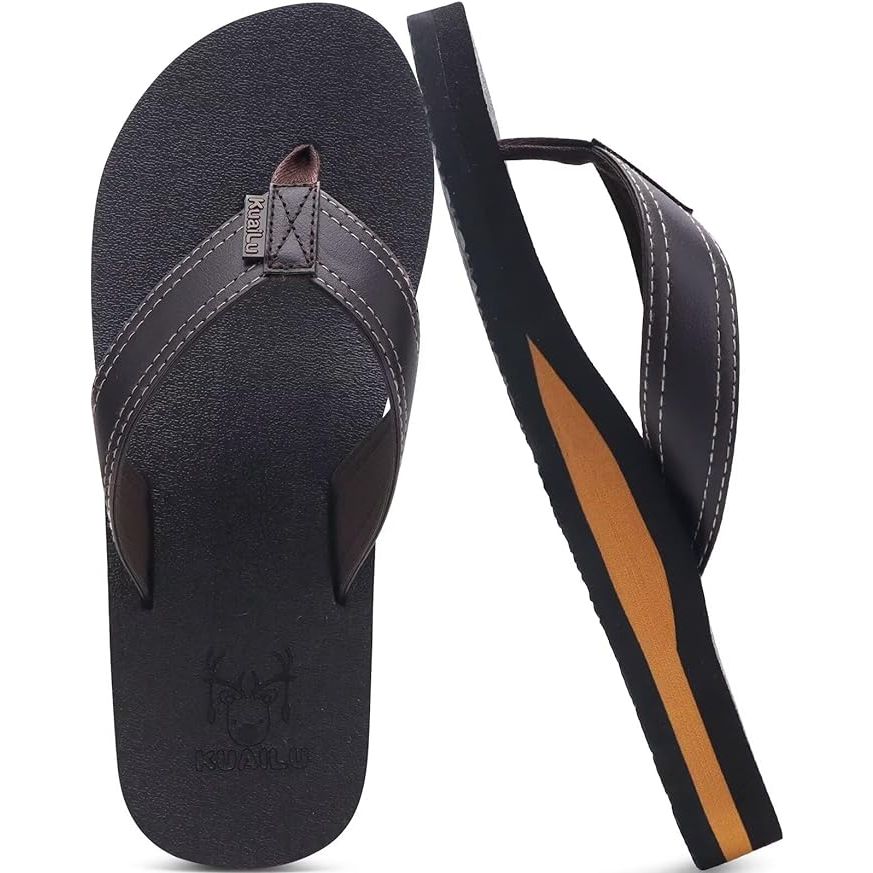 KuaiLu Men's Yoga Mat Leather Flip Flops Thong Sandals with Arch Support