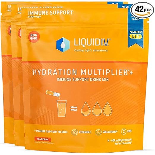 Hydration is essential for maintaining good health, and Liquid I.V. offers a convenient and effective solution with their Hydration Multiplier + Immune Support drink mix. Packed with electrolytes and immune-boosting vitamins, this tangerine-flavored powder pack is perfect for replenishing fluids and essential minerals lost during physical activity or sickness. Each box contains 42 single-serving sticks, making it easy to enjoy on the go or share with loved ones.