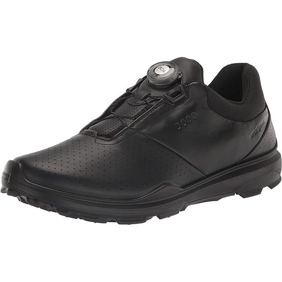 The ECCO Men's Biom Hybrid 3 Boa Hydromax Water Resistant Golf Shoe is a premium option for golfers looking for both style and functionality on the course. This shoe features a Boa closure system, allowing for a customized, secure fit with just the turn of a dial. The Hydromax water-resistant technology ensures that your feet stay dry and comfortable throughout your game, even in wet conditions.