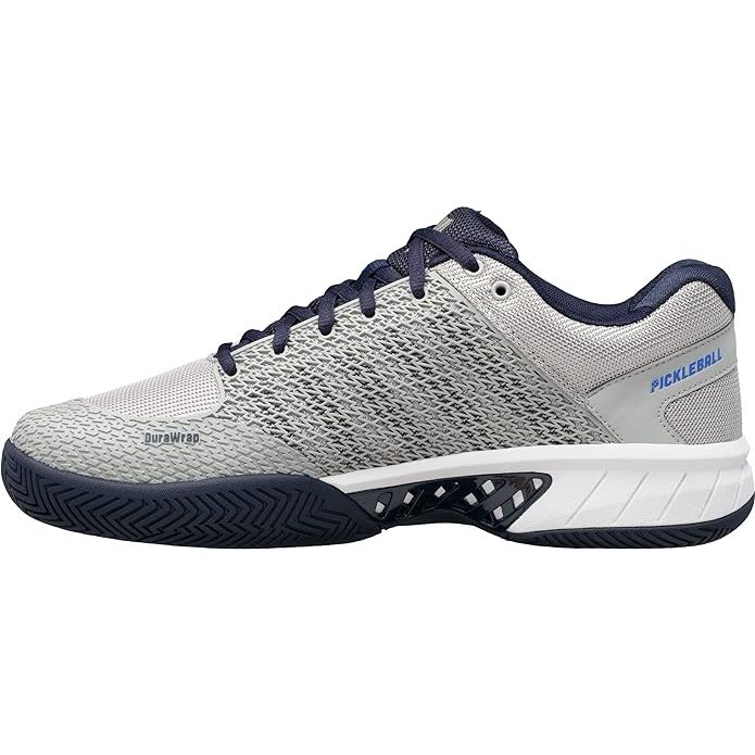 The Men's Express Light Pickleball Shoe also includes features such as a cushioned midsole for shock absorption, a padded collar and tongue for added comfort, and a breathable upper for ventilation. The shoe is designed to provide stability and support during quick lateral movements that are common in pickleball. Overall, the K-Swiss Men's Express Light Pickleball Shoe is a reliable option for players looking for a shoe that can keep up with the demands of the game. Description by ChatGPT.
