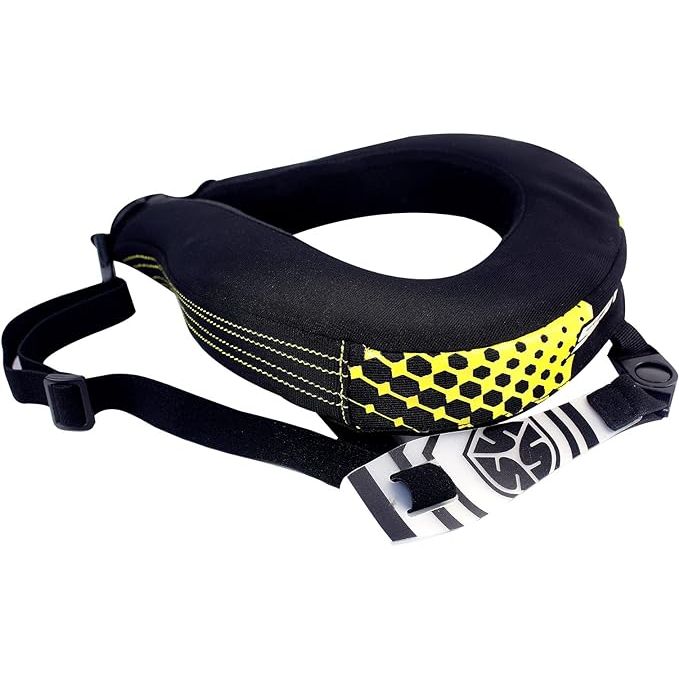 This neck rest race collar is made from high-quality materials to ensure durability and protection. It is lightweight and comfortable to wear, allowing for freedom of movement while providing essential support to the neck. The protector guard is adjustable to fit various neck sizes and has a secure fastening system to keep it in place during rides.