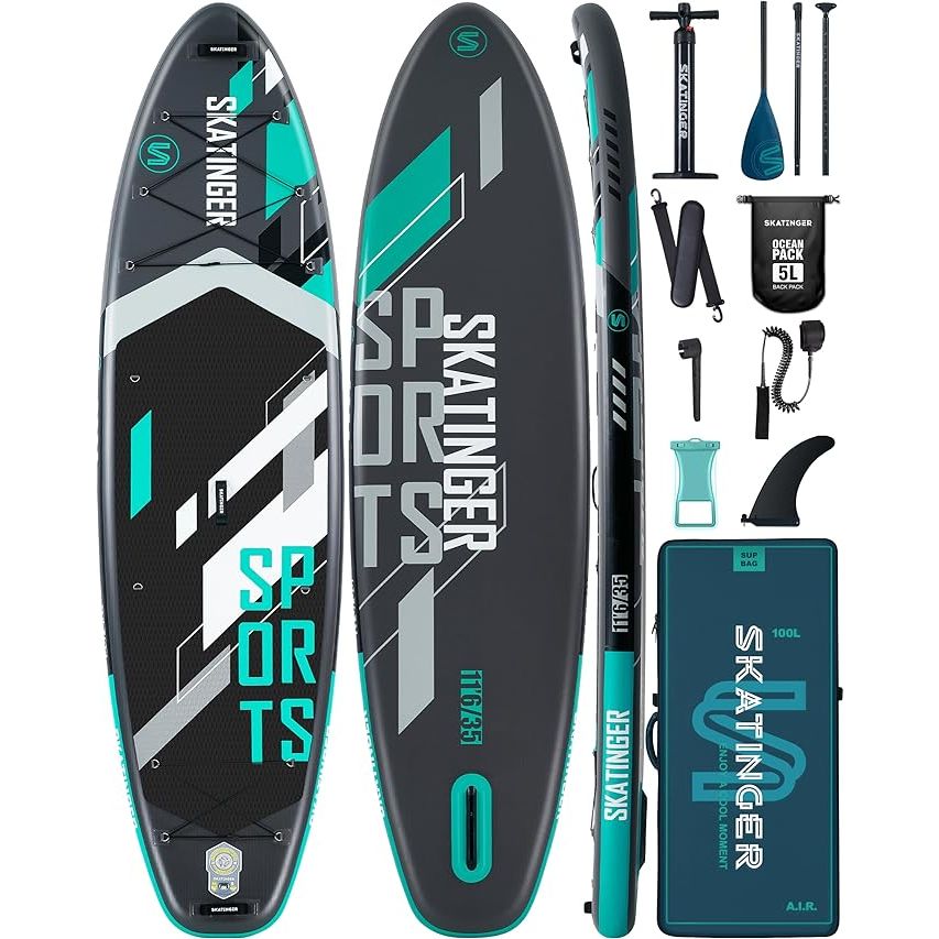 The 11'6×35" Super Wide Inflatable Stand Up Paddle Board is designed for maximum stability and durability, making it ideal for families or groups of up to three people. With its extra-wide design and non-slip deck pad, this SUP board offers a stable platform for paddlers of all skill levels. The board also comes with a shoulder strap for easy transport and a 100L backpack for convenient storage and transportation.