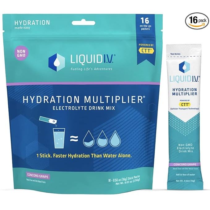 Liquid I.V. Hydration Multiplier is a revolutionary electrolyte drink powder designed to provide rapid hydration, boasting a 2x faster absorption rate than water alone. With 3x the electrolytes of traditional sports drinks, this mix is ideal for replenishing fluids during physical activity, travel, or late-night adventures. Featuring a refreshing concord grape flavor, each packet delivers a burst of hydration that not only quenches your thirst but also tastes delicious.