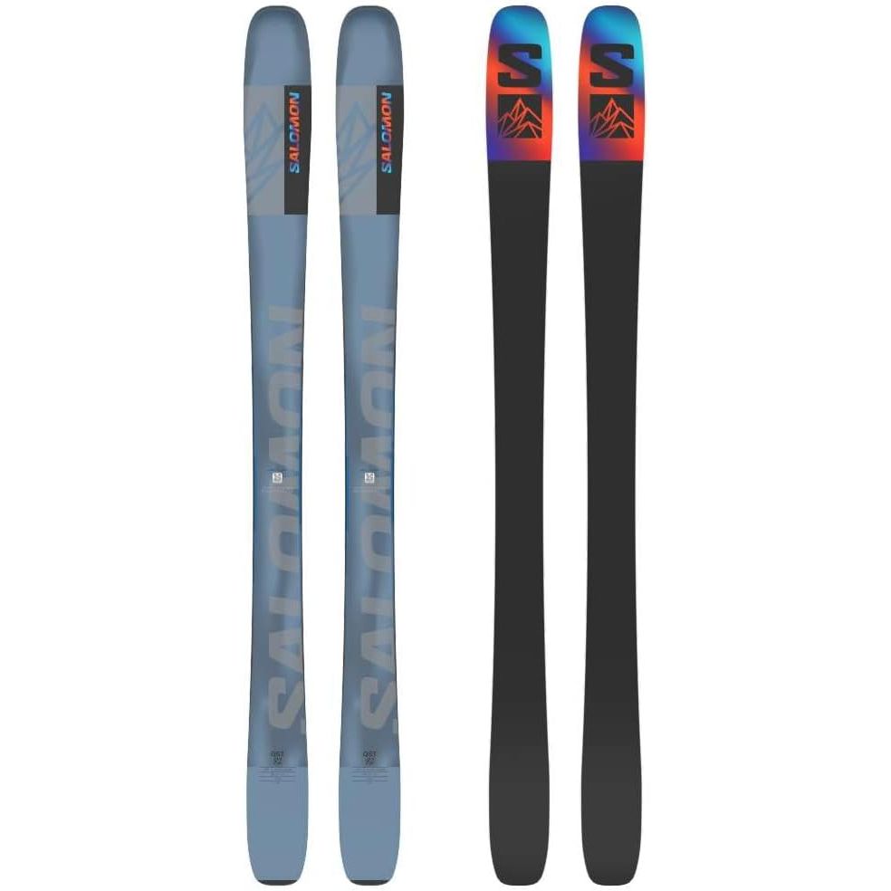The Salomon QST 92 Ski is a versatile all-mountain ski that is designed for intermediate to advanced skiers. With a 92mm waist width, it offers a good balance of stability and agility, making it suitable for various snow conditions including groomed slopes, powder, and crud. The ski features a lightweight woodcore and carbon/flax laminate construction, providing a smooth and responsive ride.