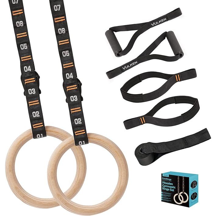 Not only do these gym rings provide a secure set-up, but they also come with workout handles and foot straps to diversify your bodyweight exercises. The handles offer additional gripping options for a full-body workout, while the foot straps engage the lower body for abdominal training and core workout. With the VULKEN gymnastics rings set, you can enjoy more exercise movements and maximize your fitness routine.