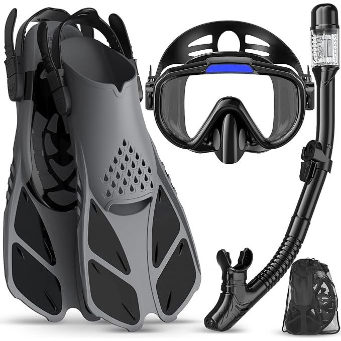 Overall, this snorkel set is a versatile and convenient option for adults looking to enjoy underwater exploration. With its high-quality materials and comfortable design, this set is well-suited for beginners and experienced snorkelers alike. Whether snorkeling in tropical waters or exploring coastal destinations, this 4-in-1 snorkel set is a reliable choice for a fun and memorable underwater experience. Description by ChatGPT.