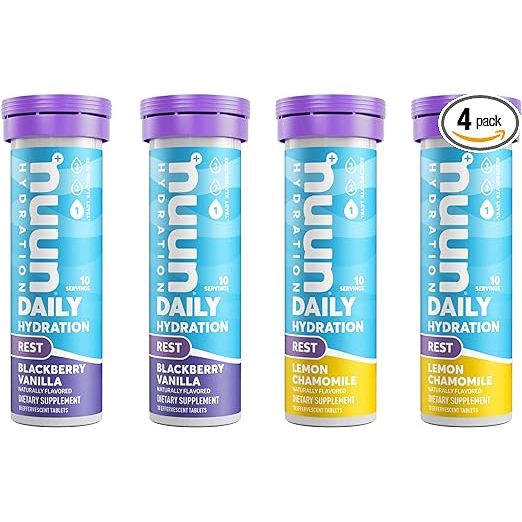 Enhance your hydration and recovery routine with Nuun Hydration Rest, Rest and Recovery Electrolyte Tablets. Specifically formulated for athletes and individuals seeking optimal muscle repair and relaxation, these tablets come in a convenient 4-pack with 40 servings of refreshing lemon chamomile and blackberry vanilla flavors. Made with magnesium citrate and a balanced electrolyte blend, these tablets support post-workout recovery by replenishing key minerals lost during exercise.