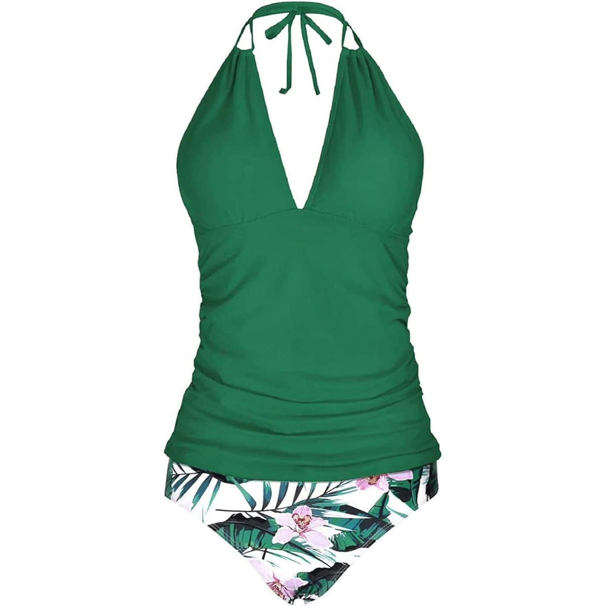 The Yonique Women's Two Piece Swimsuit is a stylish and comfortable option for those looking for a flattering swimwear option. This tankini set includes a halter neck top with a V-neck design and tummy control feature, making it perfect for all body types. The high-waisted bottom provides additional coverage and support while still being fashionable.