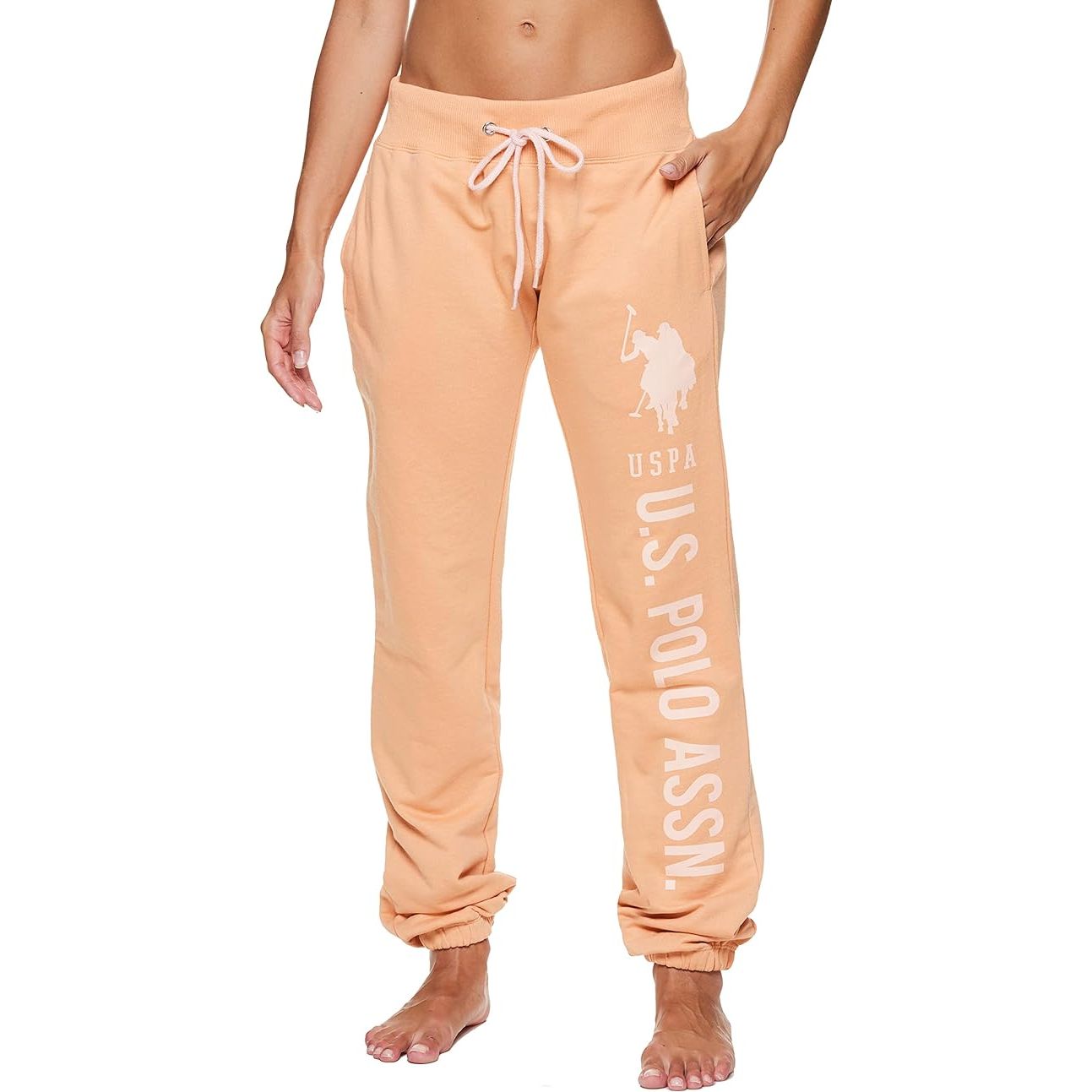 These lounge pants have a relaxed fit with tapered legs and ribbed cuffs for a modern and flattering silhouette. The side pockets provide convenient storage for small essentials while lounging or running errands. The U.S. Polo Assn. logo adds a touch of sporty charm to these versatile sweatpants.