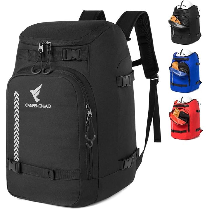 Whether you're a seasoned skier or snowboarder or just starting out, the Ski Boot Bag is an essential accessory for convenient and organized gear storage. With its spacious interior, rugged design, and comfortable carrying features, this backpack is a reliable and versatile option for transporting all your skiing and snowboarding essentials to and from the slopes. Description by ChatGPT.