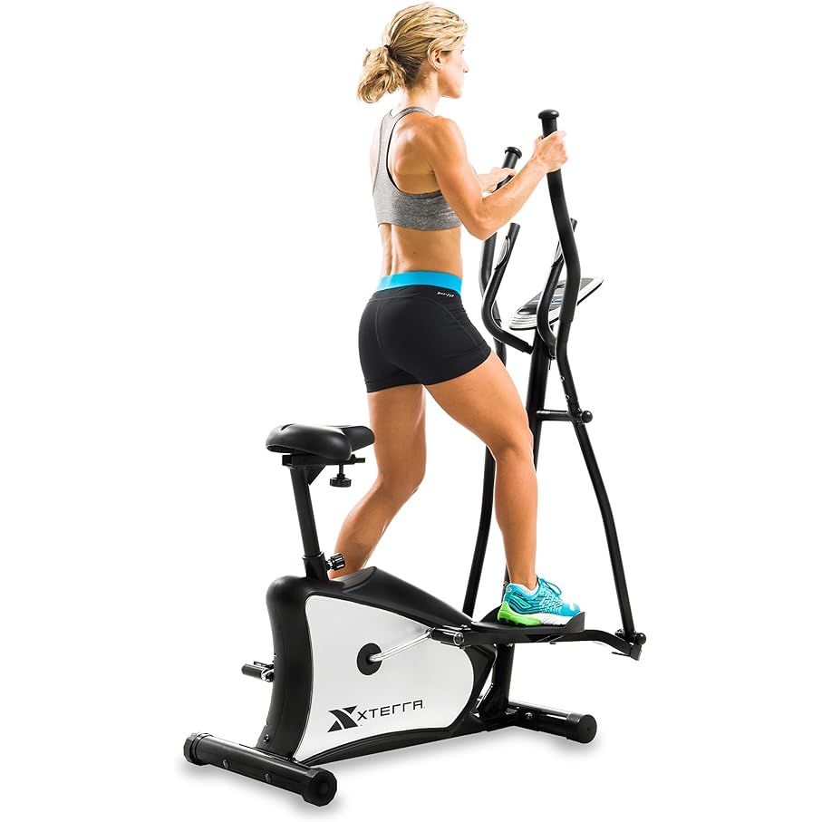 The Xterra Fitness EU Hybrid Elliptical/Upright Bike is a cutting-edge exercise machine that merges the advantages of an elliptical trainer with those of an upright bike. Providing a seamless way to partake in low-impact cardio workouts and target numerous muscle groups, this versatile fitness equipment caters to individuals of all body types with its fully adjustable seat and handlebars, ensuring a comfortable and ergonomically sound workout experience. The machine's large, textured pedals offer a secure grip, enhancing stability and minimizing the risk of slippage during intense exercise sessions.