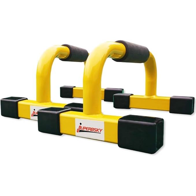 The JuperbSky Push-Up Stands Bars Parallettes Set is a piece of workout equipment designed to help users perform push-ups with proper form and increase the intensity of their workouts. The set includes two sturdy bars that elevate the hands off the floor, allowing for a deeper push-up motion and engaging more muscles in the upper body and core. This can lead to greater strength gains and improved muscle definition over time.